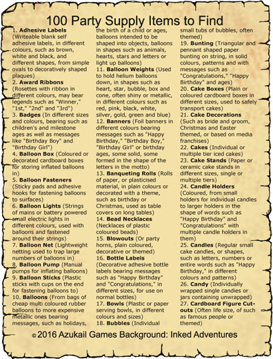 100 Party Supply Items to Find is now available to buy from DriveThruRPG and RPGNow.