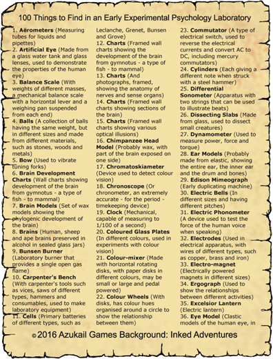 100 Things to Find in an Early Experimental Psychology Laboratory is now available to buy from DriveThruRPG and RPGNow.