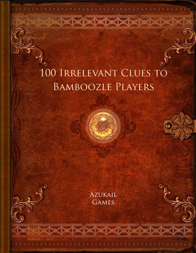 100 Irrelevant Clues to Bamboozle Players is now available to buy from DriveThruRPG and RPGNow.
