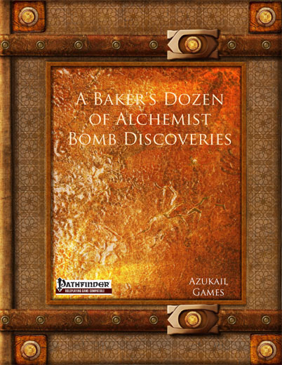This supplement for the Pathfinder Roleplaying Game details a baker’s dozen, or thirteen, new bomb discoveries for the Alchemist class.