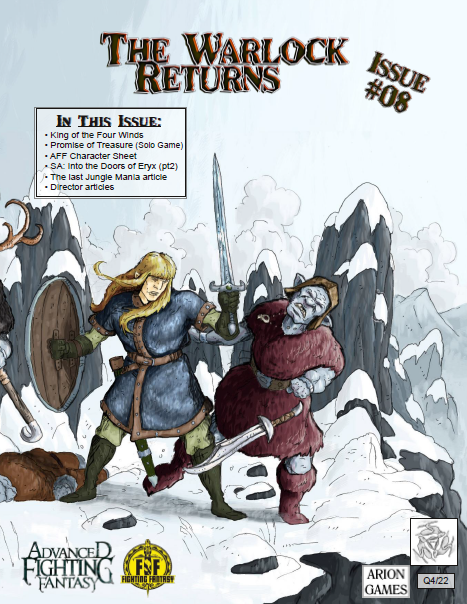 This is a fanzine for Advanced Fighting Fantasy that contains a variety of articles. It isn’t published by us, but by Arion Games, but we have contributed content to it. It’s currently available as a PDF with print on demand to follow.