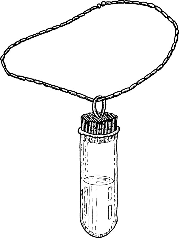 The talisman of the Rushes takes the form of a small bottle of water on a necklace for wearing around the neck. Some talismans may be made of superior materials or decorated, but all are fundamentally identical.