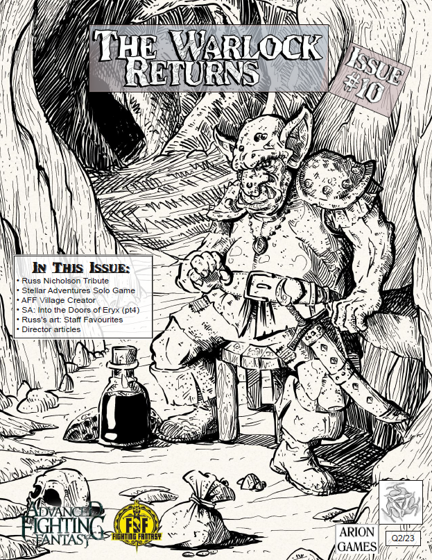 This is a fanzine for Advanced Fighting Fantasy that contains a variety of articles. It isn’t published by us, but by Arion Games, but we have contributed content to it. It’s currently available as a PDF with print on demand to follow.