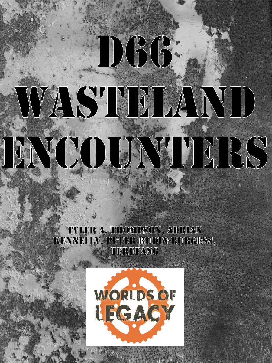 Published by Sad Fishe Games, this is a collection of 36 post-apocalyptic encounters for Legacy: Life Among the Ruins to which a number of authors, including us, have contributed.