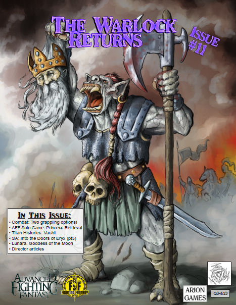 This is a fanzine for Advanced Fighting Fantasy that contains a variety of articles. It isn’t published by us, but by Arion Games, but we have contributed content to it. It’s currently available as a PDF with print on demand to follow.