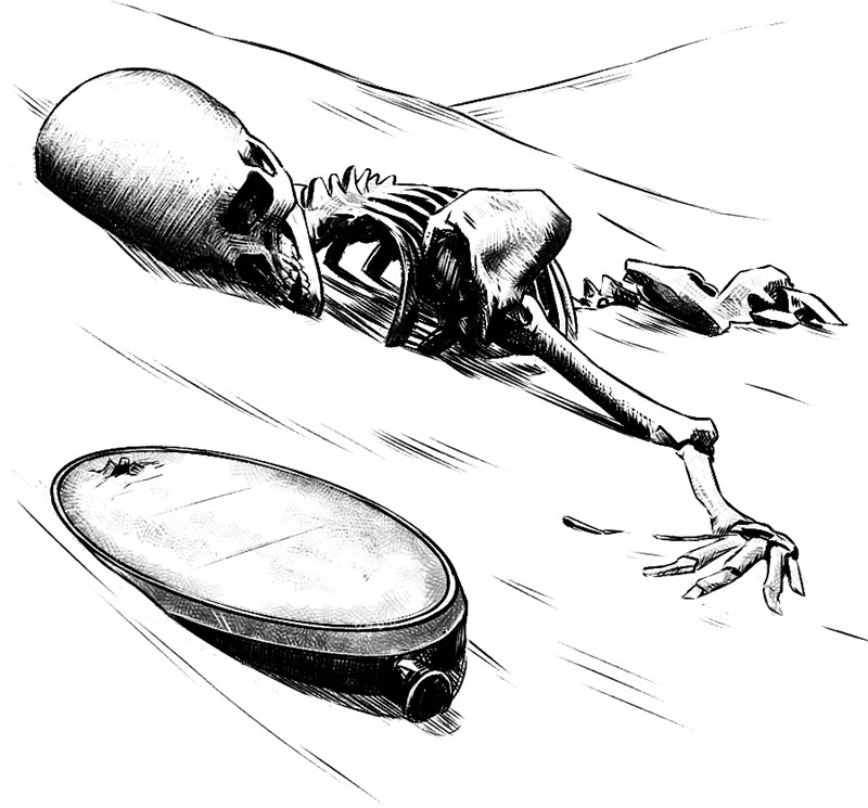 - Sticking out of the sand is a bit of canvas, which is revealed to be part of a buried tent.
