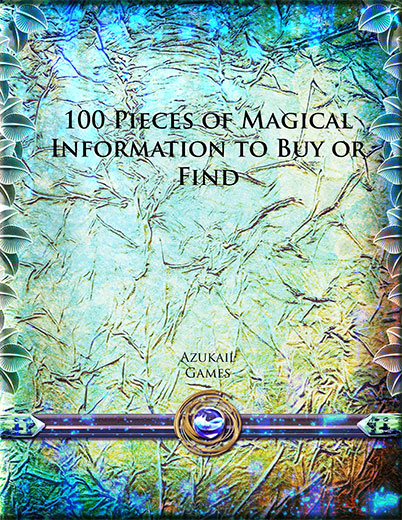 Characters may come across pieces of magical information and 100 Pieces of Magical Information to Buy or Find has 100. They can have value in themselves or be potential adventure hooks.