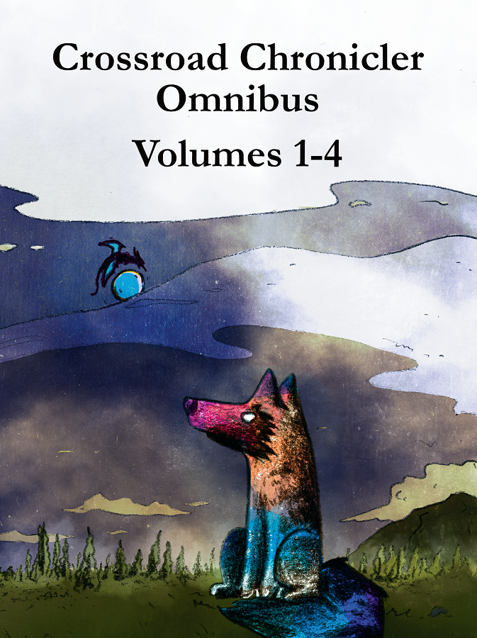 A softcover print on demand omnibus version of issues 1-4 on the Crossroad Chronicler has been published on DriveThruRPG. Click here to take a look at it.