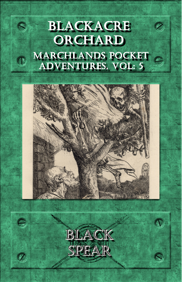 An estate improperly acquired, an orchard besieged by vengeful spirits and decay, a labyrinth of trees and a haunted house. Blackacre Orchard was once the producer of the finest apples and cider in the Marches, but no longer- now it lay abandoned, with foul beings prowling its tree rows and manor halls.