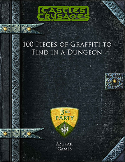 This supplement has 100 different pieces of graffiti that could be found in a dungeon. They could be used as dressing, misdirection or possible adventure hooks. As well as the main table, there are three small tables that can be used to determine the graffiti’s location and appearance.