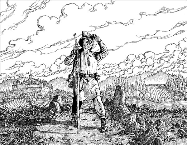 - Darran Bothal: Darran’s primary job is thatching the roofs of the villagers’ homes. There aren’t enough people in a single village to keep them fully occupied, so they will travel to other villages too, though not any that are that far away. Darran harvests all their own thatch to use in the roofs, and dry this at their home. As a result of the time spent harvesting reeds for thatching, and travelling to other villages, they are more knowledgeable about the surrounding area than the average villager.