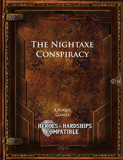 The Nightaxe Conspiracy (H&H) by Daniel Aznavorian is an urban adventure for Heroes & Hardships. In this adventure, the characters see a bar fight turn nasty due to the influence of a drug. Following up on this leads them to a gang that is distributing this drug. The adventure comes with separate PDFs of battlemaps.