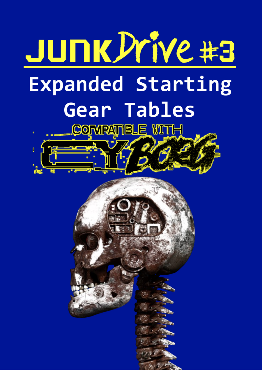 JunkDrive #3: Expanded Starting Equipment Tables for CY_BORG is now available to buy from DriveThruRPG.