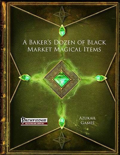 A Baker's Dozen of Black Market Magical Items (PFRPG)Adventure Party Name Generator and A Baker’s Dozen of Black Market Magical Items (PFRPG) are now available to buy from DriveThruRPG and 100 Less Than Useful Books to Find on a Forgotten Realms Bookshelf (Fantasy Grounds) is now available on DMs Guild.