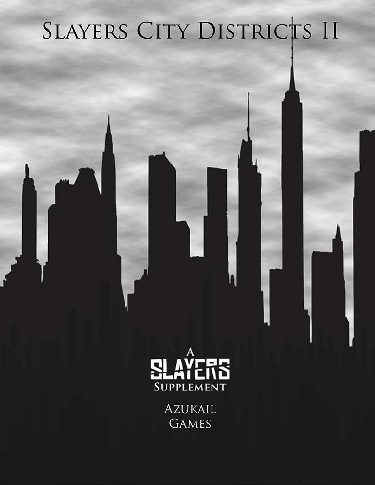 The Slayers RPG focuses on The City, and this city is built around districts. Slayers City Districts has six new districts to flesh out The City, each with a description, rumours, locations, people and factions.