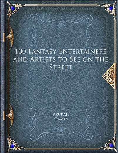Characters may encounter entertainers and artists on the streets of a fantasy city, or in other places such as carnivals and taverns. 100 Fantasy Entertainers and Artists to See on the Street has 100 such to encounter, to add flavour or as potential adventure hooks.