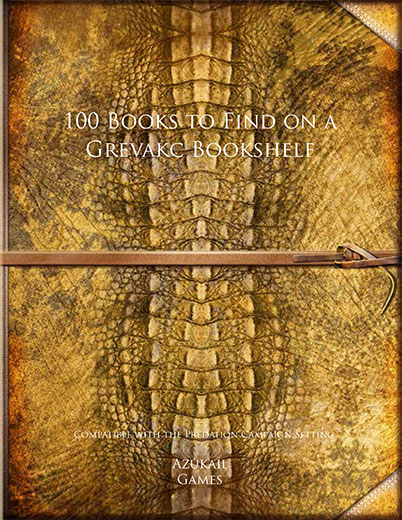 This supplement has 100 books that could be found in the Grevakc setting for Predation, in both digital and physical forms. Whether or not any book is useful or valuable is up to the GM.