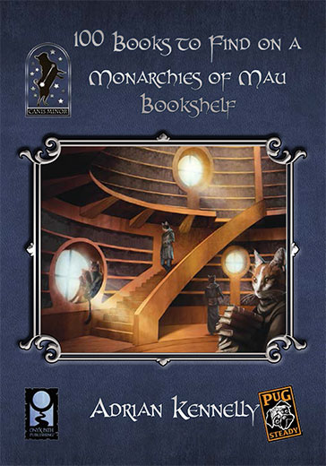 This supplement contains 100 books written by cats that could be found on a Monarchies of Mau bookshelf. Each book’s name, author and an overview of the topic is given. Whether or not a specific book has any use is up the Guide.