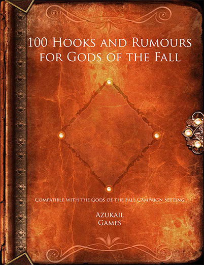 Characters may sometimes be asking around for information and this supplement has 100 different hooks and rumours they may hear in Gods of the Fall.
