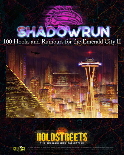 This supplement has 100 hooks and rumours that characters could hear in or about Seattle, the Emerald City in Shadowrun.