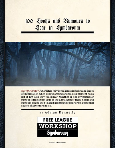 Characters may hear rumours whilst asking around for information and this supplement has 100 such to hear in the Symbaroum setting.