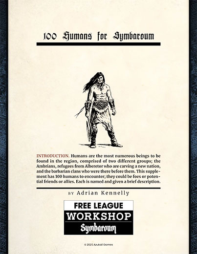 Humans are the most common kin of the lands of Symbaroum, either those of the Barbarian clans or the Ambrian refugees. This supplement has 100 humans to encounter; they could be foes or potential friends or allies. Each is named and given a brief description.