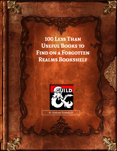 This is a list of 100 books that could be found on a bookshelf in the Forgotten Realms. They may be inaccurate, contain misinformation or simply be irrelevant. Whether or not any individual book has use is up to a DM. With books still being uncommon in a fantasy setting, they will probably have a small value. Each book has the title, author if there is one and some details on the contents.