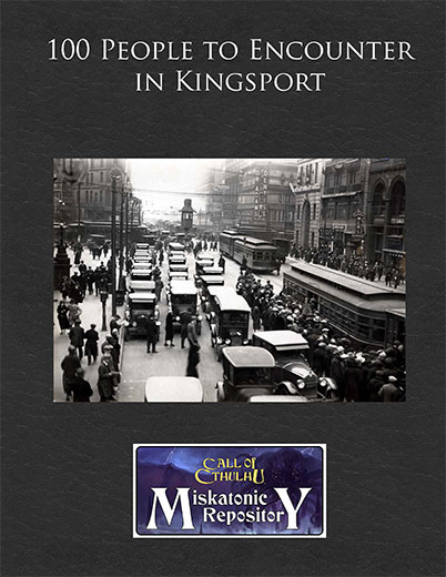 This supplement has 100 ordinary people for investigators to meet, aimed at 1920s Kingsport. Most are not important and have little if any knowledge of the Mythos.