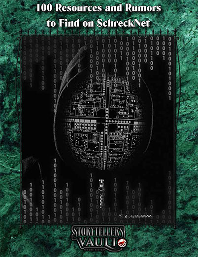 If your game takes place in the post-SchreckNet parts of the setting, the rumors and resources listed here can still be used. For story considerations, however, consider the elements mentioned as fractured parts and pieces of the original SchreckNet; islands of contact or isolated locations floating somewhere in the dark web preserved by Nosferatu who continue maintaining small, secret parts of the old network. Or, for darker implications, consider that these may represent parts of SchreckNet that were unplugged or deleted, but like the kindred who first created them simply refuse to die.