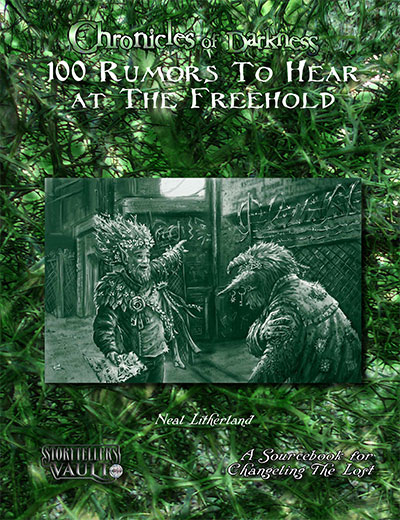 The following rumors are things you can use to fill in the background of your particular chronicle, or you can use them as jumping off points for things your players need to investigate. None of these rumors are required to be true, however; the only thing that’s certain when it comes to the fae is that nothing is permanent, and everything changes. So it really is up to you, as the Storyteller, to decide if any of these things are true, and if so, how your players discover that truth.
