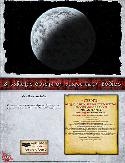 This supplement adds another 13 planetary bodies that characters can travel to. The size and gravity of the bodies isn’t always stated, so a GM can drop them where they like, whether in orbit around a gas giant or as a planet in their own right, Suggested monsters and hazards are also given.