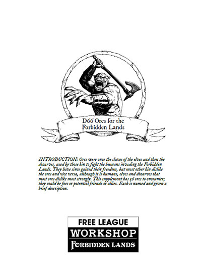 Orcs were once the slaves of the elves, and then the dwarves, but have since gained their freedom. This supplement has 36 orcs to encounter; they could be foes or potential friends or allies. Each is named and given a brief description.