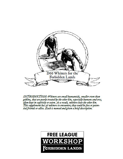 Whiners are small humanoid that are preyed on by almost everyone else. This supplement has 36 whiners to encounter; they could be foes or potential friends or allies. Each is named and given a brief description.