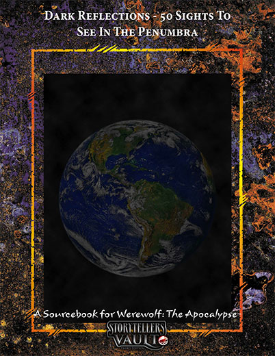 For Storytellers, the Penumbra is often the part of the spirit world that is most relevant to plots in Werewolf: The Apocalypse. These are the places where packs may cross the Gauntlet to escape pursuit, or to attempt to purge corrupted spirits on their own turf. Since this part of the spirit world is such a common part of so many chronicles, the following entries are meant to provide inspiration and guidance for Storytellers.