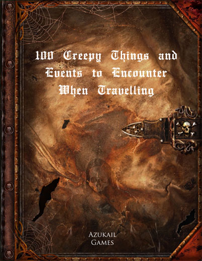 This is a list of 100 encounters, things and events that could be come across whilst travelling. Some of the encounters are suitable for any setting, but the majority are most suited for technology levels of at least the latter end of the 19th century or after, as mass transit vehi9cles that are not under characters’ control or fast forms of transport are most suited.