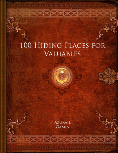 This is a list of 100 different places where valuables of different types can be stored, from tiny gems and microdots to weapon. Around a third are suited to any time period; the rest require more modern settings. In some cases, the 18th century is new enough but most of the modern hiding places require the 20th century or equivalent, and the latter half of that. Some spaces can be used for bulky items whilst others are only suitable for documents.