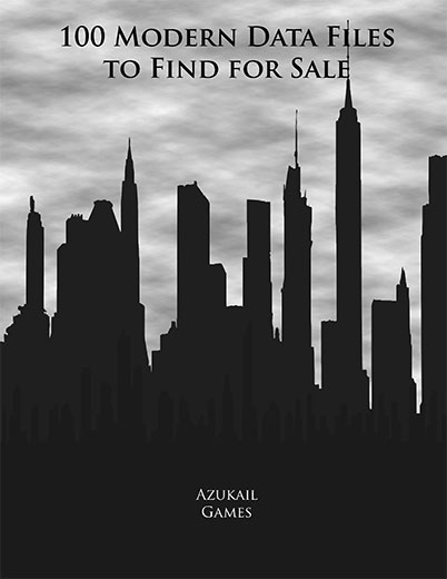 This supplement has 100 files or collections that characters could buy, of varying values and degrees of utility.
