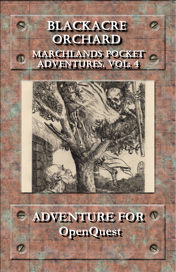 An estate improperly acquired, an orchard besieged by vengeful spirits and decay, a labyrinth of trees and a haunted house. Blackacre Orchard was once the producer of the finest apples and cider in the Marches, but no longer- now it lay abandoned, with foul beings prowling its tree rows and manor halls.