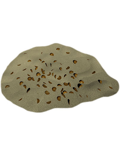 This is a piece of colour filler art showing gold coins partially buried in sand.