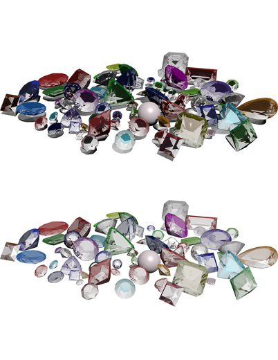 This is a piece of colour filler art of a pile of gems of different colours, types and cuts.