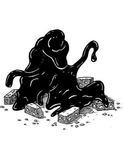This is a piece of hand drawn filler art depicting a blob creature on broken stones.