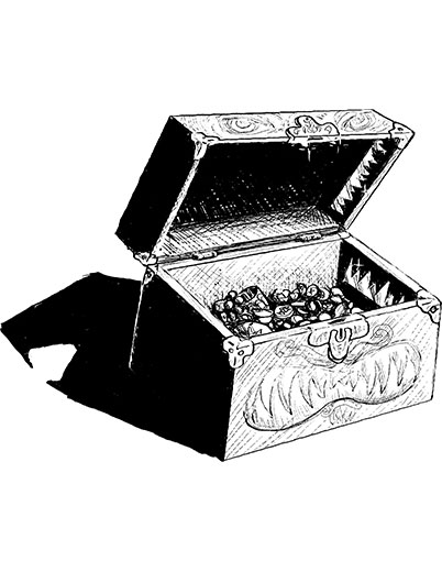 This is a piece of hand drawn filler art depicting a chest with teeth.