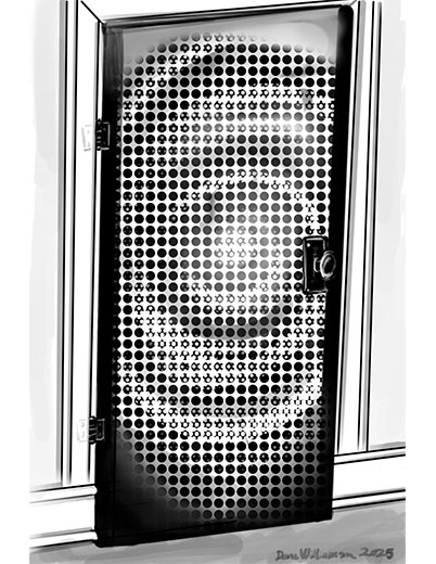 This is a piece of hand drawn filler art depicting a door with a hypnotic pattern.