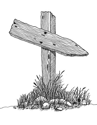 This is a piece of hand drawn filler art of an overgrown sign.
