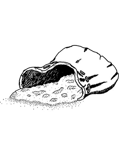 This is a piece of hand drawn filler art depicting a pouch containing powder.