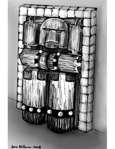 This is a piece of hand drawn filler art depicting a door that turns into a golem.