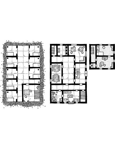 This is a hand drawn map of a two story building with a subterranean jail The art may be used in personal and commercial products, and can be modified in any way. It cannot be resold, even if modified, as stock art or part of another stock art pack. Attribution is required in commercial products for this piece.