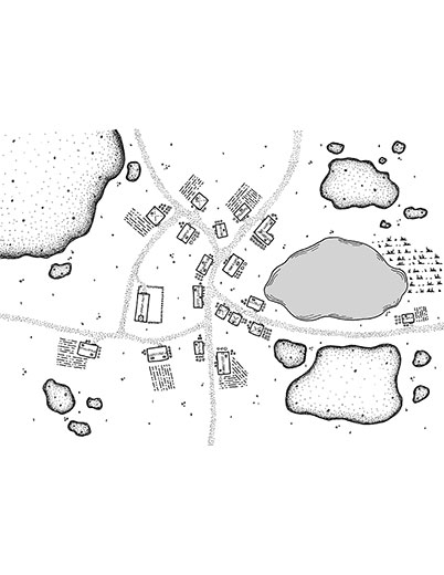 This is a hand drawn map of a small village The art may be used in personal and commercial products, and can be modified in any way. It cannot be resold, even if modified, as stock art or part of another stock art pack. Attribution is required in commercial products for this piece.