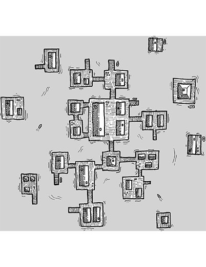 This is a hand drawn map of a small village built on platforms in a stretch of water. The art may be used in personal and commercial products, and can be modified in any way. It cannot be resold, even if modified, as stock art or part of another stock art pack. Attribution is required in commercial products for this piece.