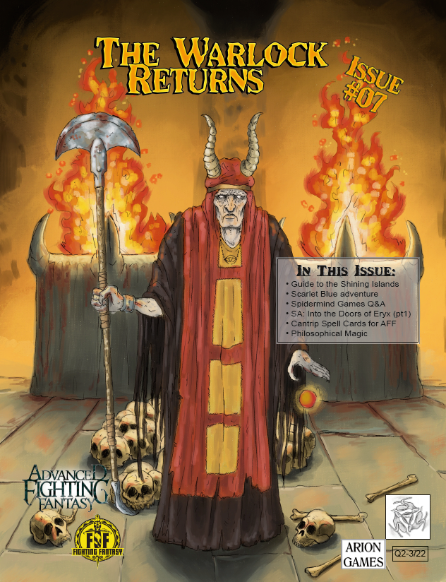 This is a fanzine for Advanced Fighting Fantasy that contains a variety of articles. It isn’t published by us, but by Arion Games, but we have contributed content to it. It’s currently available as a PDF with print on demand to follow.